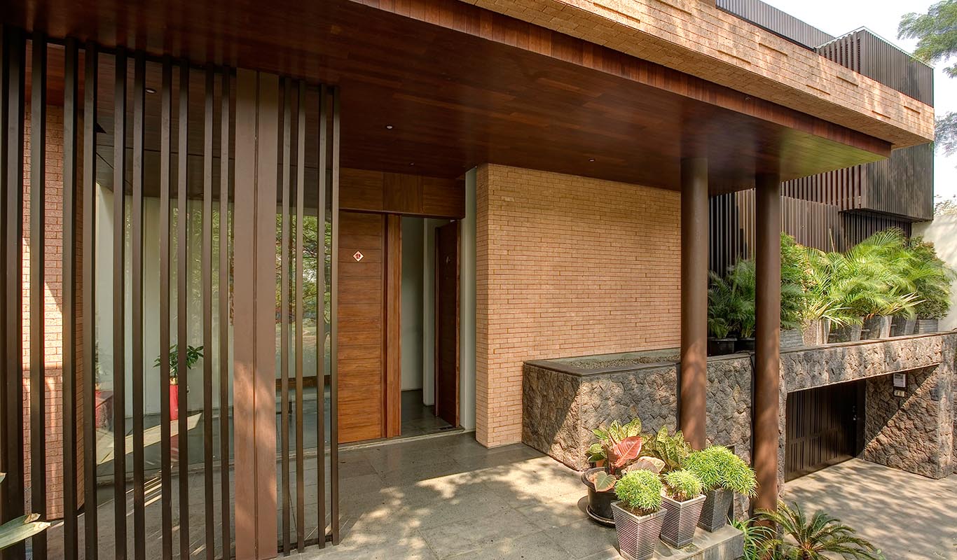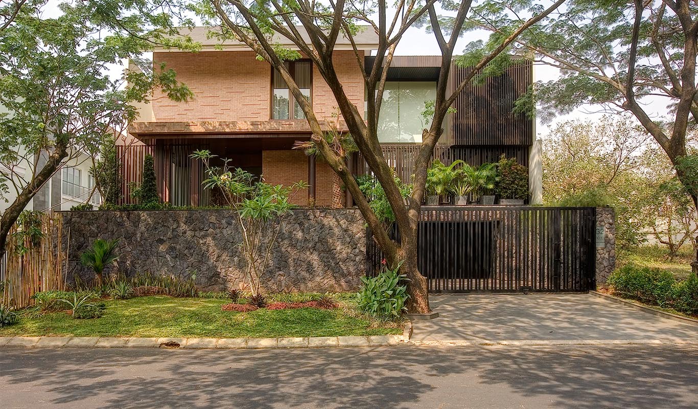 Tjipta House is located in a gated community in Modernland, Tangerang, away from the city noises and amidst lush environment. The 450 sqm single-family residence is nestled on a quiet zone, across the golf course, and near a public park. The streets that facing the house is lined with big trees. The design concept of Tjipta House aims to provide all of the family member a serenity and calmness with a view of a picturesque landscape from within and without the house. The use of red brick wall and wood can fit the sense of natural rawness from the surrounding. The whole design of Tjipta House reflects the elegance of design, yet modest and intimate.